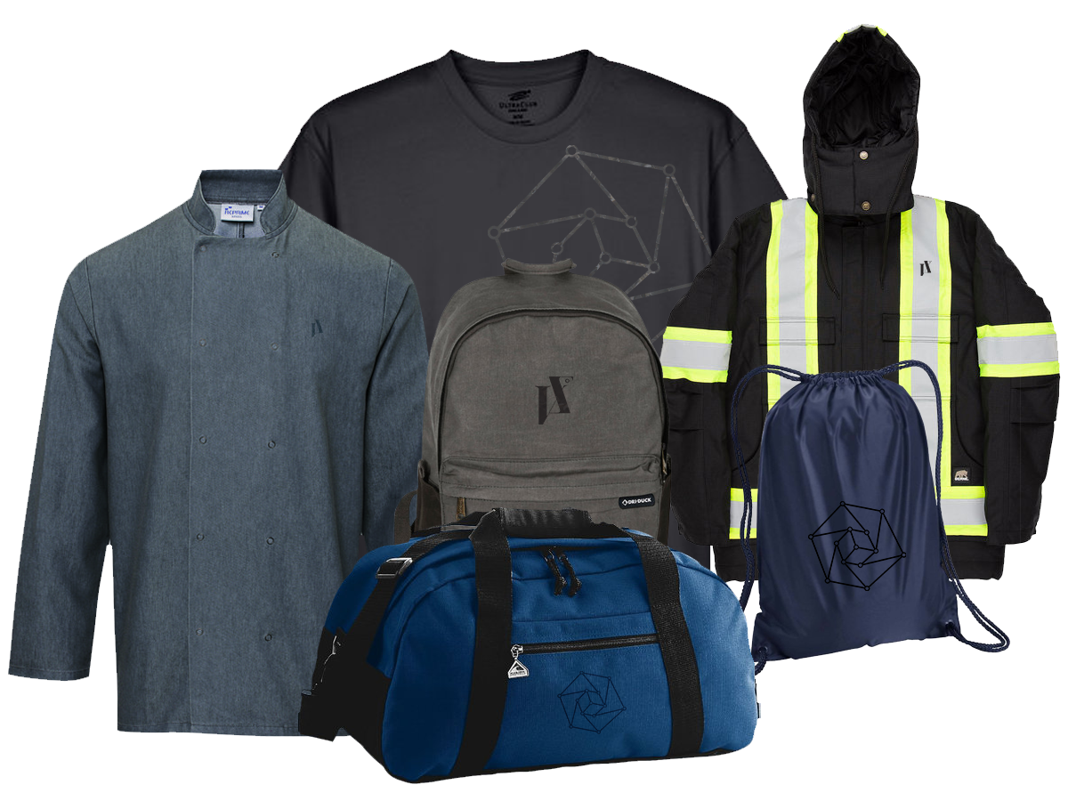 Polos • Shirts • Long Sleeves • Dri-Fit • Safety Wear • Hoodies • Crewnecks • Sweatpants • Shorts • Chef Apparel • Tanks • Tote Bags • Hats •