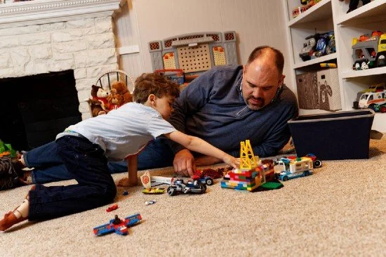 Jim Ananich with his son Jake, 4, at home in Flint.