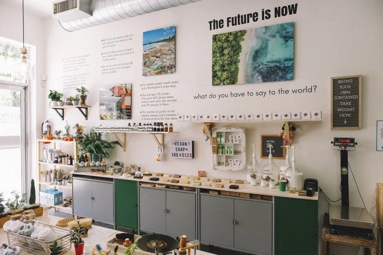 This is one Miami example of the market of the future, “complete with every needed household item from milk and laundry detergent, fresh juice, and even dog treats. The only catch is to help get customers into the habit of reusing contains, and minimizing our trash output.”